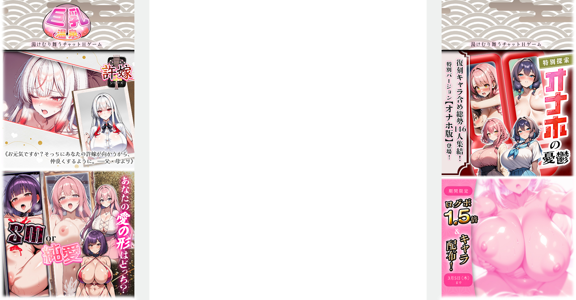 DLsiteにじGAMEを利用するにはブラウザのJavascript、および、CookieをONにしてください。 ピックアップ ゲーム一覧へ カワイイ女の子たちとダンジョン攻略! 今日も元気に摩訶不思議アクメンチャー♪ アライアンスセージ 今すぐ始める! 登録なしですぐに遊べる! ゲーム一覧へ もふちゃ!~もふもふチャット~ もふもふたちと、いちゃいちゃしよう ももメモ~ももいろメモリーズ~ かわいい女の子と24時間即レスチャット♡ マルチバースラブ かわいい女の子とラブラブHな毎日を過ごそう! パコホ~パコっとしホーダイ~ パコっと代を気にせずどこでもパコっとしホーダイ めるぺろ~メールでぺろぺろ~ あなたの言葉で彼女との運命が変わるHな恋愛シミュレーション! 新着ゲーム ゲーム一覧へ 性感コネクト~囚われの星乙女たち~ 壊れた少女を集めて蘇らせる、美少女放置RPG 淫獄の交歓ぷりんせす エロっ娘たちと時空を超えてハメはずし どM娘~淫乱美女を孕ませ快楽堕ち♡~ ご主人様待ちの「どM娘」たちがあなたの刺激を求めている! もふちゃ!~もふもふチャット~ もふもふたちと、いちゃいちゃしよう おっぱいラボ学園のお姫サマ戦略 秘密のラボでめくるめくお姫さまハーレム! ももメモ~ももいろメモリーズ~ かわいい女の子と24時間即レスチャット♡ 事前登録中ゲーム ゲーム一覧へ ロボっ娘中出し発情学園~淫乱ハーレム性活~ ロボっ娘たちと激エロハーレム学園生活!? ぬぷぬぷっ!夜伽話 これは、世界を救う終わりなきおとぎ話。 人気ランキング ランキング一覧へ 神楽大戦・陰之巻 パコホ~パコっとしホーダイ~ めるぺろ~メールでぺろぺろ~ 4 シュガーコンフリクトX -眠るセカイと神々の喰園- 5 ももメモ~ももいろメモリーズ~ 6 英雄クロニクル 7 おっぱいラボ学園のお姫サマ戦略 8 アライアンスセージ 9 ビーナスライブ R18 10 巨乳温泉~湯屋の桃源郷~ 11 チョイスる!~選んで恋するパラダイス~ 12 億万長者-総裁の花道、美女たちの恋-R18 13 もふちゃ!~もふもふチャット~ ダウンロード対応アプリ アプリ一覧へ アライアンスセージ 摩訶不思議アクメンチャー♪ Android シュガーコンフリクトX for Android 家畜の私が、敵になった仲間を取り戻す物語 Android 開催中の企画・キャンペーン 【GIFあり】おさわり×同棲♡家出少女とあまあま性活!シロウト家出娘と俺【特集】 【2026年2月】月間ランキング! ※R18 【2026年2月】月間ランキング! 【2026年2月】DLチャンネル運営が勝手に選ぶ、先月面白かったまとめ記事 【アテナの深掘り!】個人サークル「花うさキャット」デビューしたての涼花みなせさんに色々聞いてみました 【GIFあり】かわいい女の子を自分だけのものに…!!支配・洗脳系スマホゲーム3選!!【特集】 【トークキャンペーン】オススメの「心が温まる作品」を語って1000ポイント!? DLsite Play 通信 vol.4 偽善、裏切り、嘘、加害。甘い言葉の裏の顔。どろどろビターな背徳感 『アモラルアイランド』配信特別記念!あるぷ先生直撃インタビュー! 【GIFあり】ギャル題材エロゲ3選!ギャルとエッチって憧れるよね…【特集】 【GIFあり】女の子捕まえて弱いとこ執拗に攻撃💕触手スマホゲー3選!!【特集】 【全年齢向け】売れ筋への感度の高いユーザーたちが買った作品まとめ【2026年1月版】 誰がなんと言おうと、俺はココ。一点突破のフェティシズム! 【GIFあり】おにいちゃん大好き…!!兄ラブ作品特集! 【成人向け】エロスへの感度の高いユーザーたちが買った作品まとめ【2026年1月版】 【ブルアカ特集】 DLsiteで話題沸騰中のブルアカ作品をピックアップ!【同人】【2025冬】 新成人にオススメ!純愛作品5選 【GIFあり】夏休み作品特集!冬の寒さに「夏」で立ち向かえ!【特集】 【年間】2025年ランキング!【男性成人向け同人】