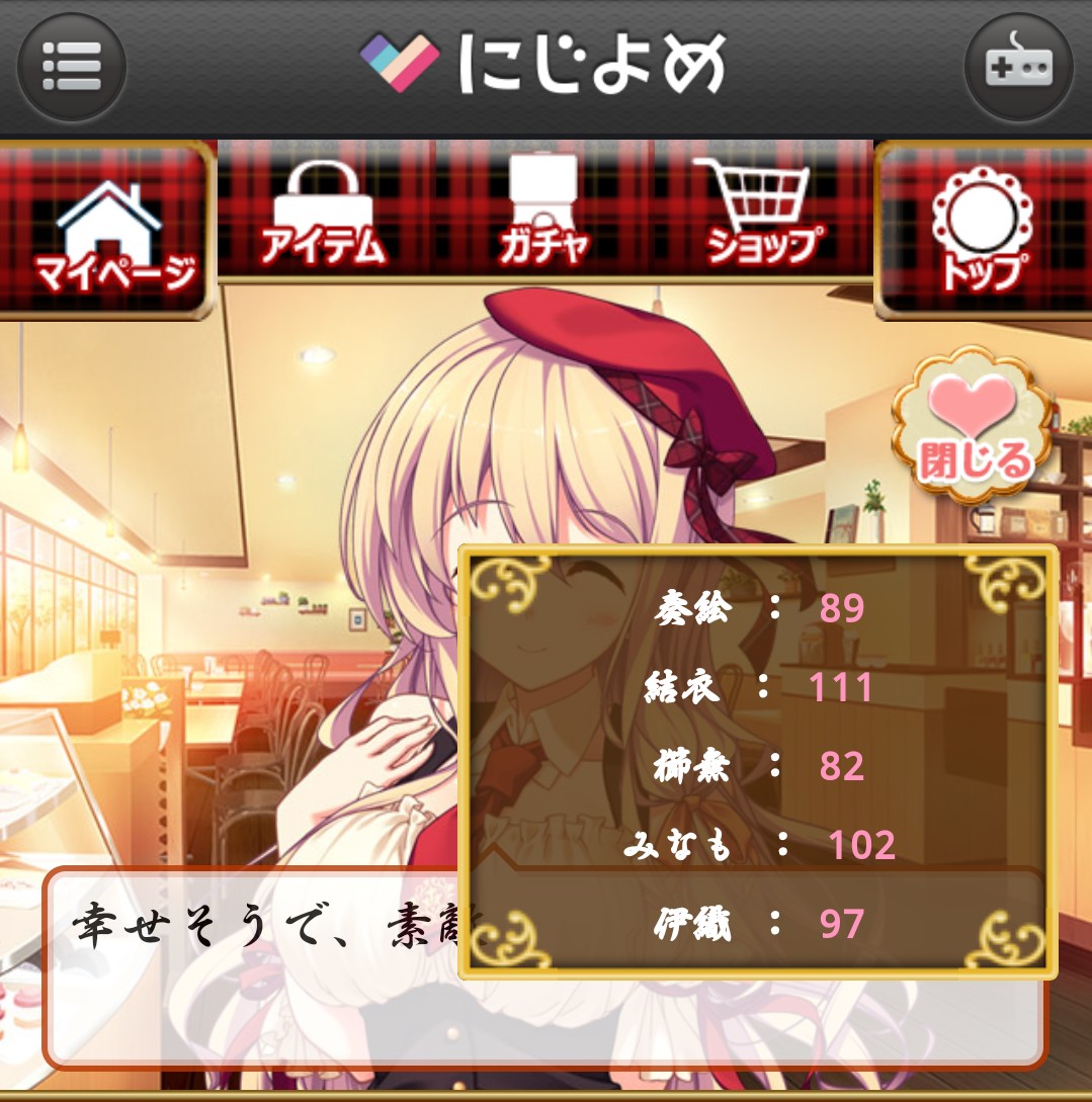 頑張って好感度upアイテム奏絵(40)結衣(39)櫛無(41)みなも(31)伊織(28)迄貯めた……まだまだ足らないだろうなぁwww