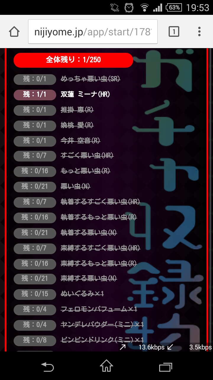 半分くらいガチャ引いたけどリセット条件1枚も出ないなぁ