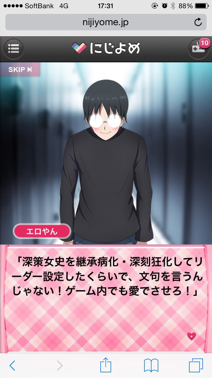 あと全然関係ないけどにじよめってどこもかしこも文字数少ないね…コメントもだけど、運営にすら送れる字数1000ってorz
