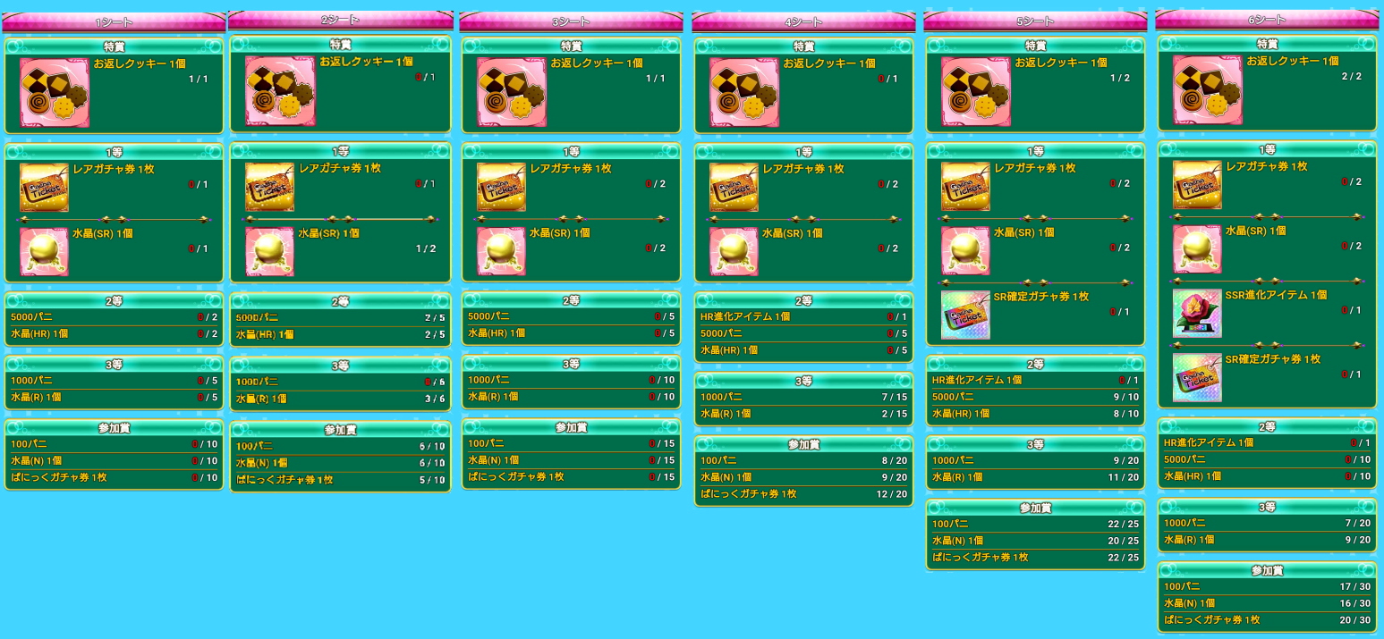 特賞「お返しクッキー」を全部取り切るとリセットして次のシートへ進めますが、段々と中身が多くなり、「お返しクッキー」を手に入れる難易度が高くなっていきます