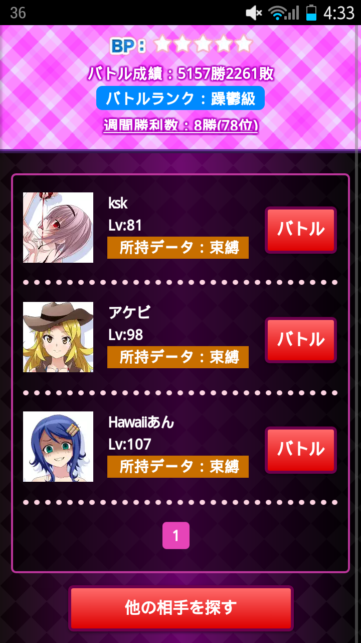 ランク上がってデータ残り2種類になると3〜6人固定になるから戦う前から結果分かるし勝てる人にひたすら粘着するだけに…