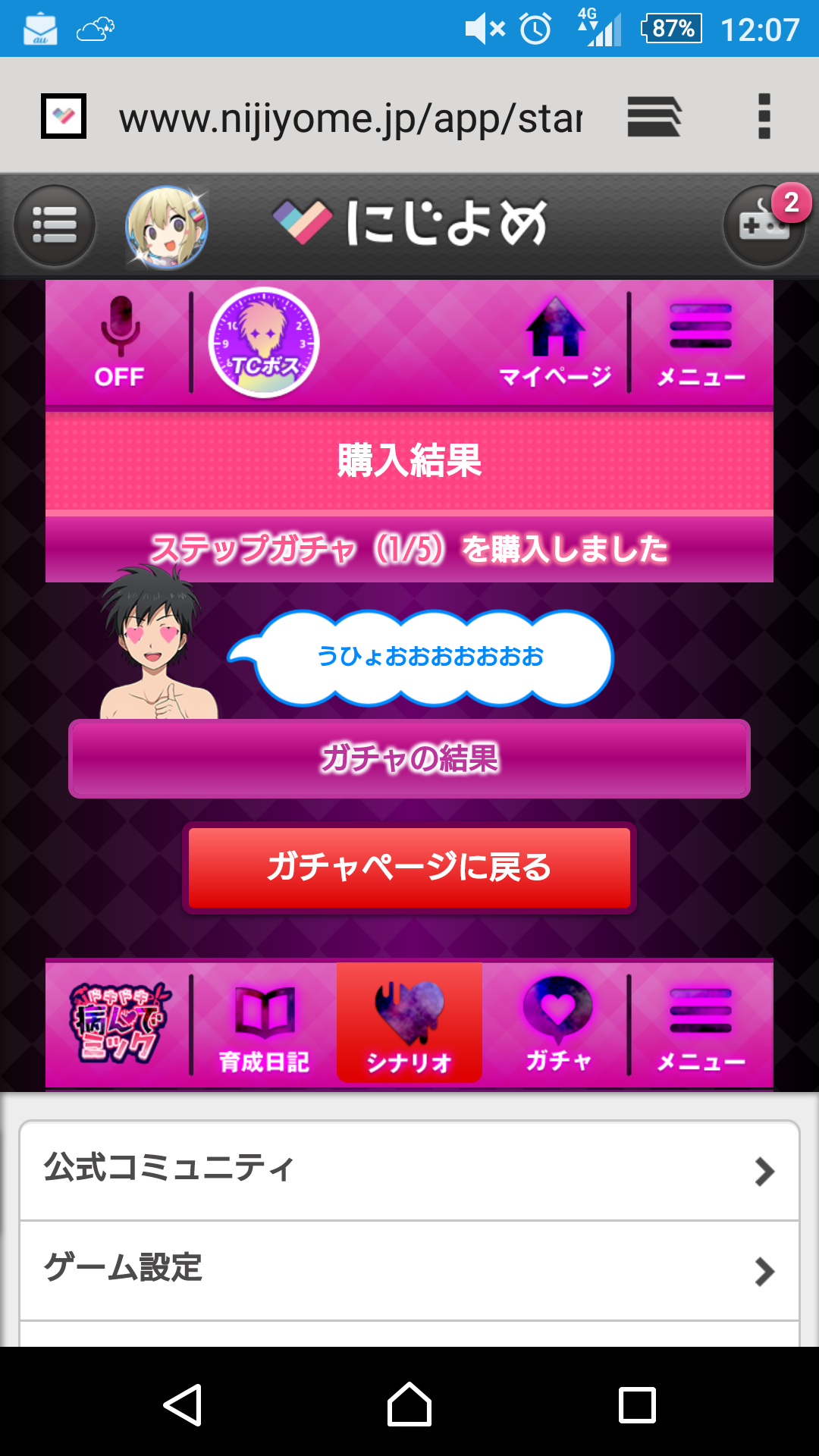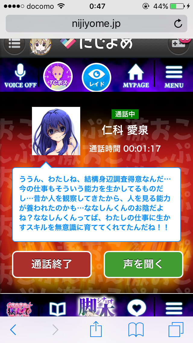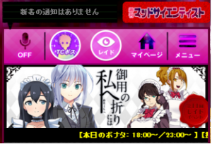 通常探索画面で上部マイクON TCボス マイページ メニューはあるんですが女の子がいる所が空白でそこの下側に「参加する」と「保留する」だけが表れて再読み込みしてもダメでした。