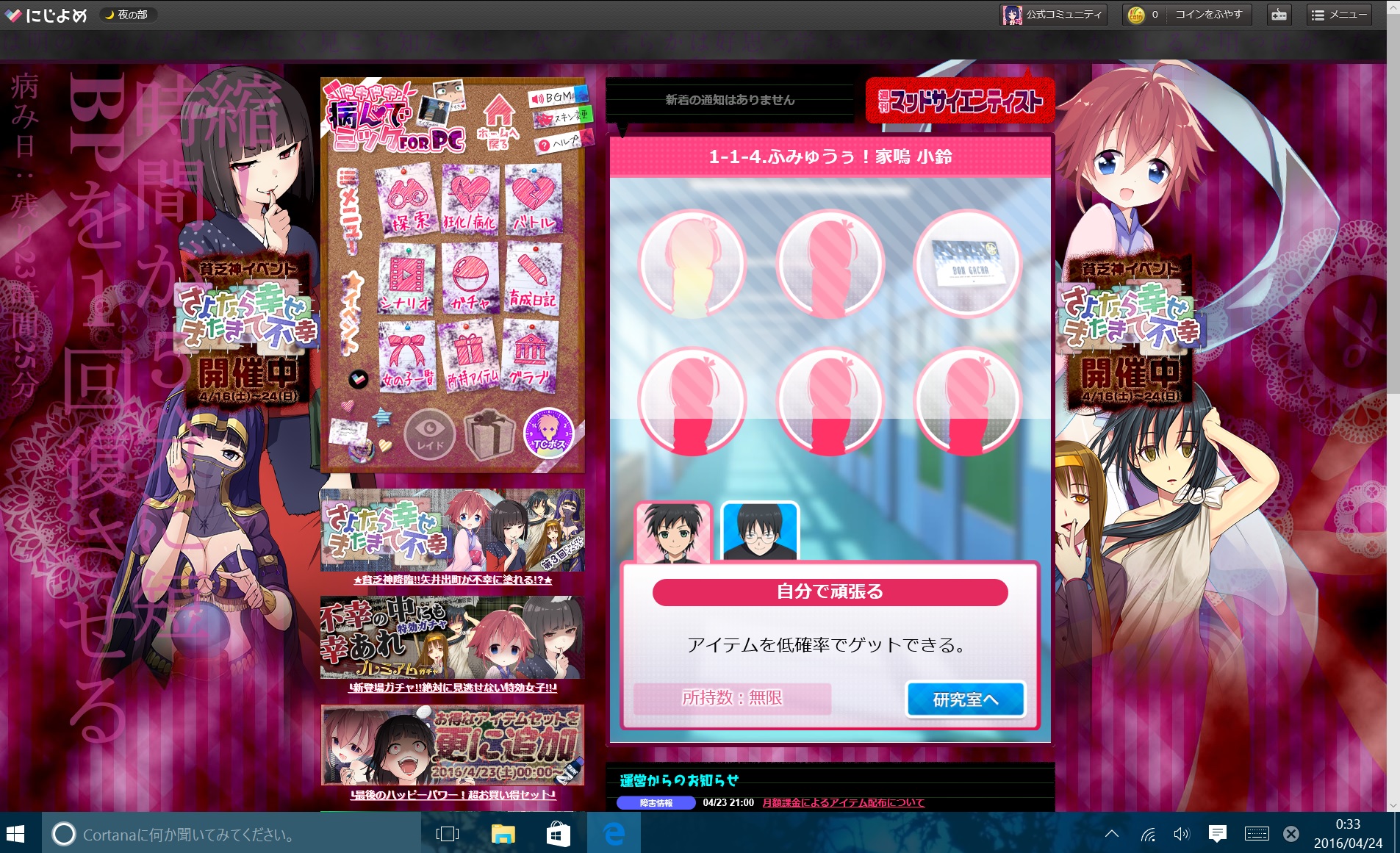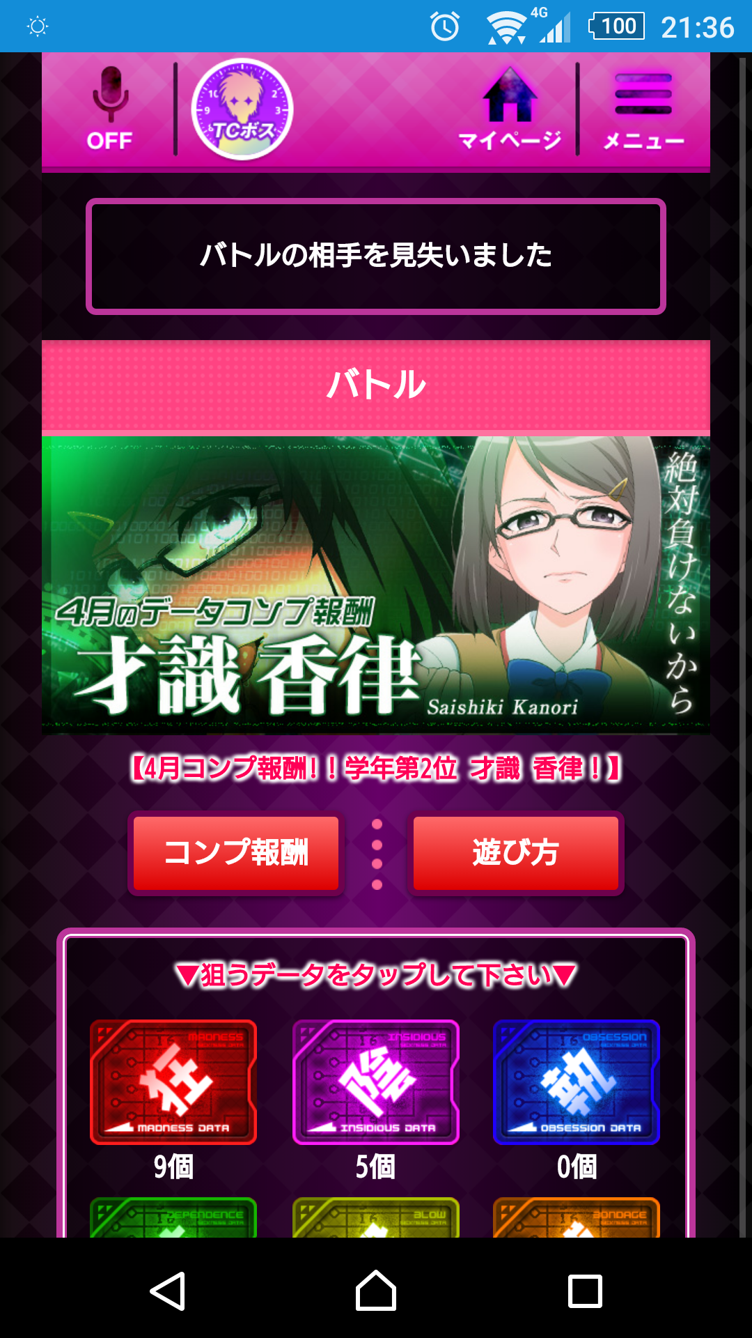 ・ホーム画面の右上にある週間マッドサイエンティストがクリックしても反応しない。