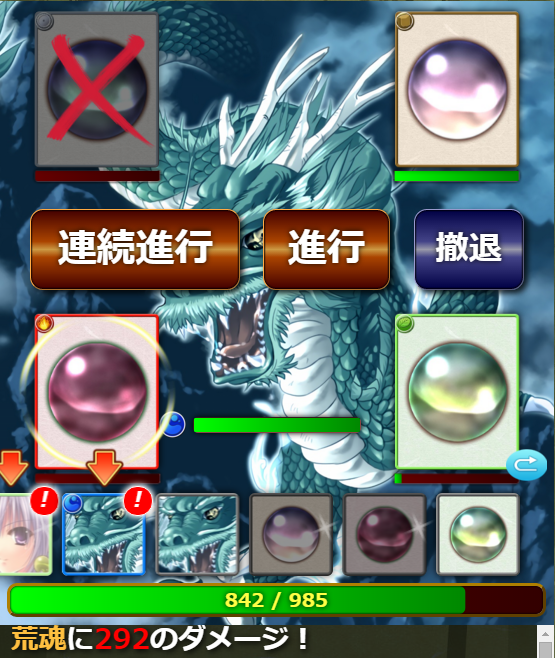 とりあえず攻撃型SRレベル20の必殺技+相生+相克を使えば龍神の周りの魂は一撃必殺が可能。