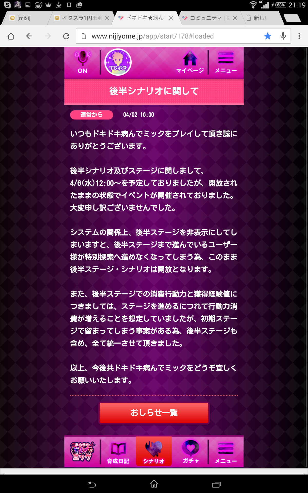 連投になって申し訳ないです。公式が「ステージ進行によるスタミナ変動無し」とした発言は後半シナリオに関するお知らせ内です。一応SS貼っときますね。