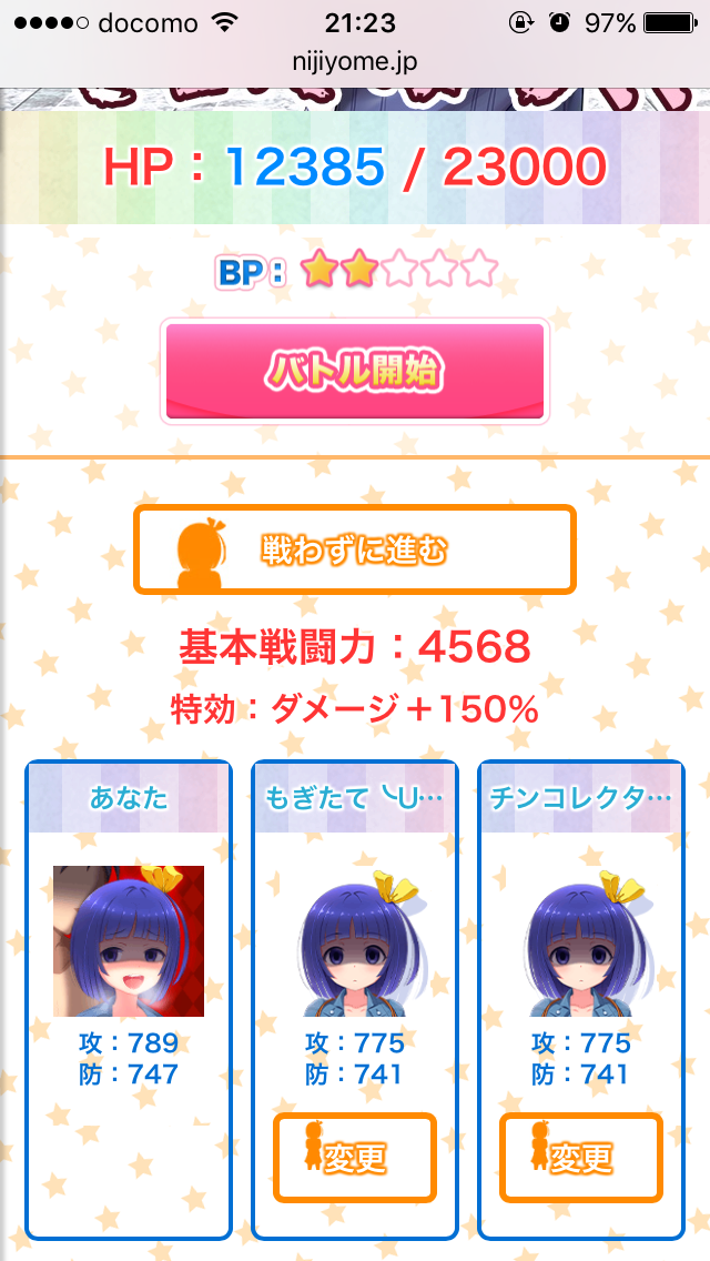 自分は特攻女子をあまり持っていないですが、ビンゴなんかのガチャはイベントページが消える最終日の病み日効果「ガチャ高レアリティ確率UP」にやるタイプなので、今はやめておきます。(水曜の正午前にある程度やってもHR1枚しか出なかったので。)