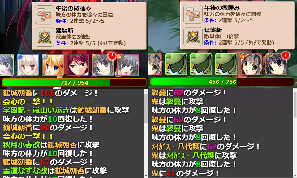 ブレザー・葛城弥生が鳳鳴斬を使うと下ろし立てまで初期化されて回復が落ちます。