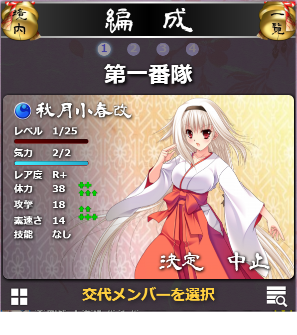 参考までにですが83の画像のようになった際は一人目に神力爆発を所持している小春改、二人目に神力爆発改を所持している小春改の順に選択して進化を行っています。