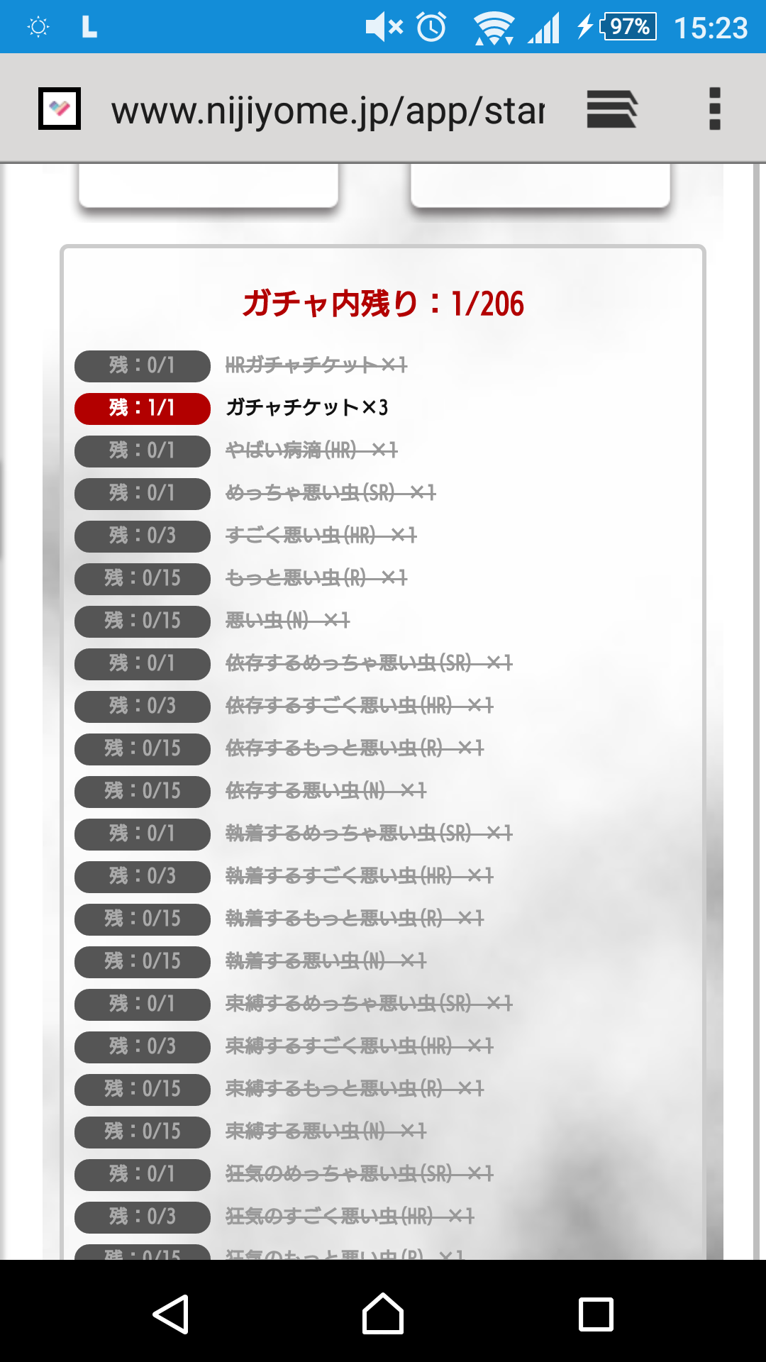 前回のビンゴは特効キャラすべてフルで行けましたけど今回はRは各2枚HRは一枚と二枚でした。