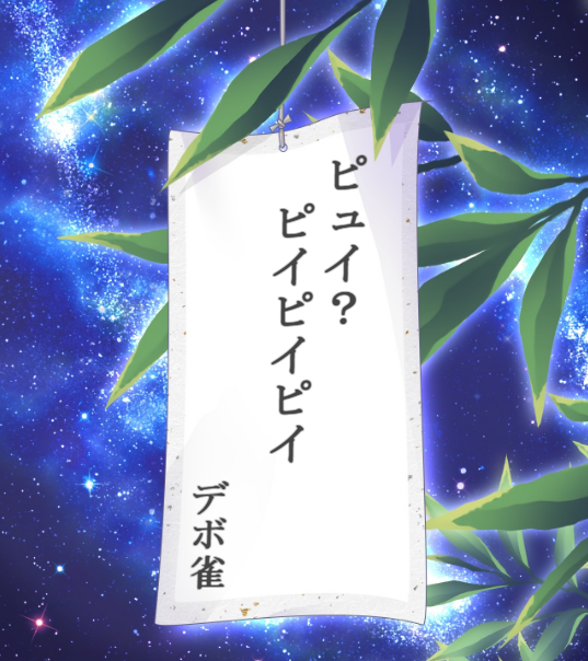 デボ雀って「ピュイ」とか「ピイ」だったのか。「ちゅん」では無かったのね・・・。 -