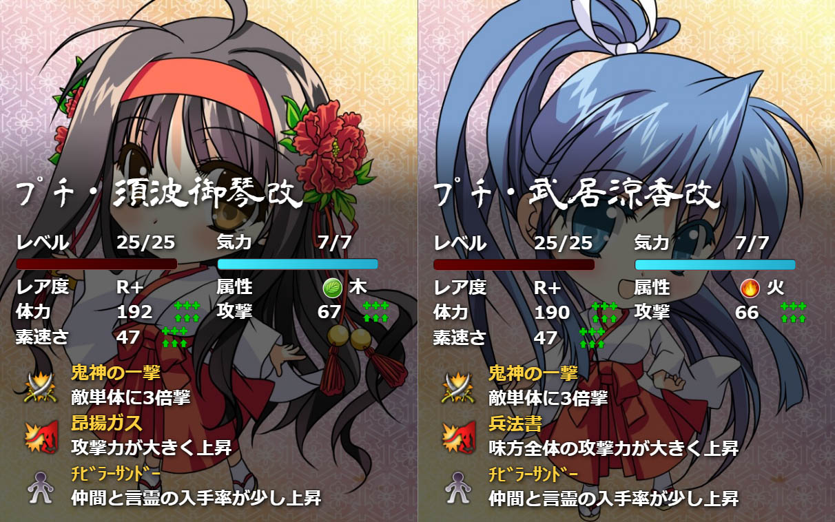 朝香と龍神しかオール+&↑に出来るのがいないので頑張ります。SR向日葵が鬼ステで出るなら話は別ですが。