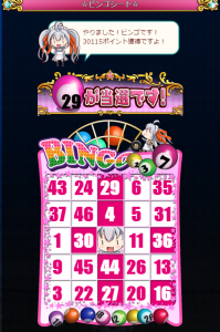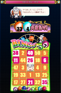 1000+2000+3000・・・と増えていく(少なくとも3連ビンゴは6000ptっぽかったです)。