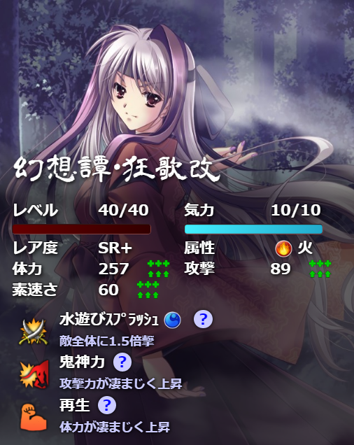 お務めで手に入るSR+は皆ステータスは保守的なので。 -