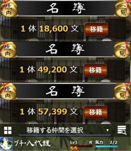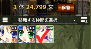古銭100,000文の消費にて、SRでぼが各属性1枚ずつ手に入った感じ。