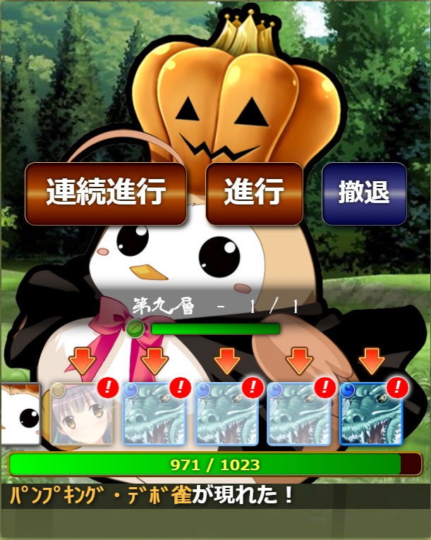 パンプキングデボ雀(クラッシュ消去 搦める横の糸)とデボ(クラッシュ消去 勇者の歌)の進化に燕子花を食わせたら