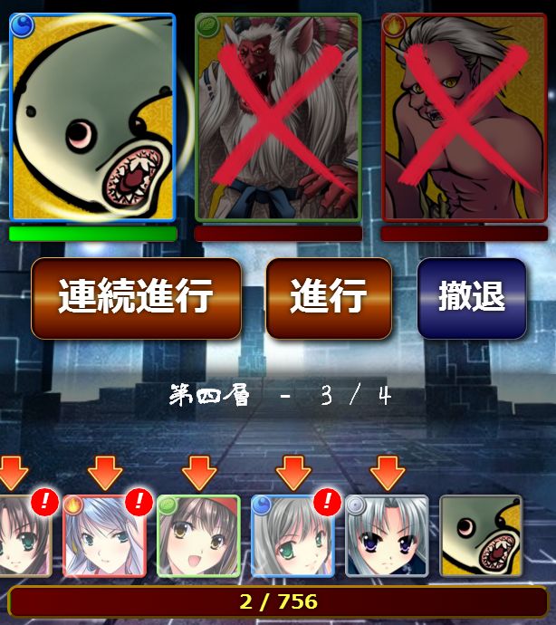 それで本当に人魚を出したいなら6層以上(「進む」を選んだ先)にしかでなく、そこの難易度は「妖狐壱」の難易度に近いです。
