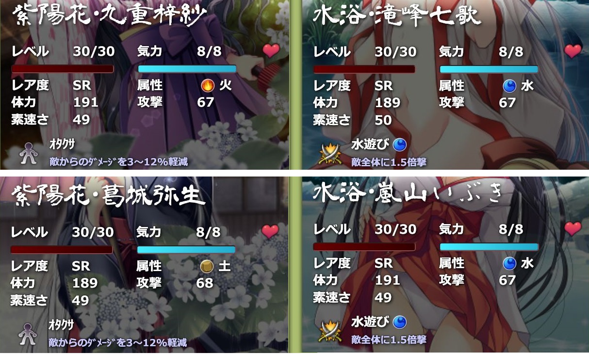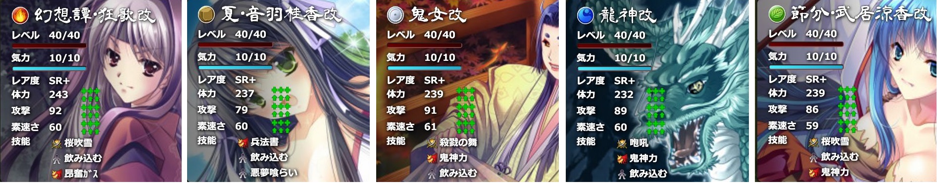 ③基本技能が無いSR+の例:龍神、狂歌、朝香等