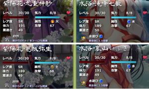 とりあえず、ドロップ系でのSRは、龍神様、朝香(R在り)、狂歌様(R在り)、鬼姫、胡蝶が、現在、お務で、手に入れられるSRです。