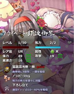 しかしそうなるとURの〇〇・極や龍神の咆哮のような全体吸収スキル持ちに付けたいスキルだと思いましたが、なかなか付けたいキャラを選ぶスキルですね~。 -
