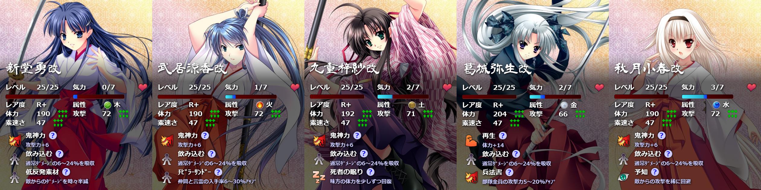 R+やSRを使うなら、「兵法書」「鬼神力」での火力増強が必要になります。 -