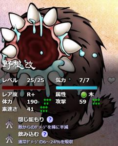 ・引きこもり(閉じこもりの進化スキル)を覚えたキャラを作って野槌に覚えさせる