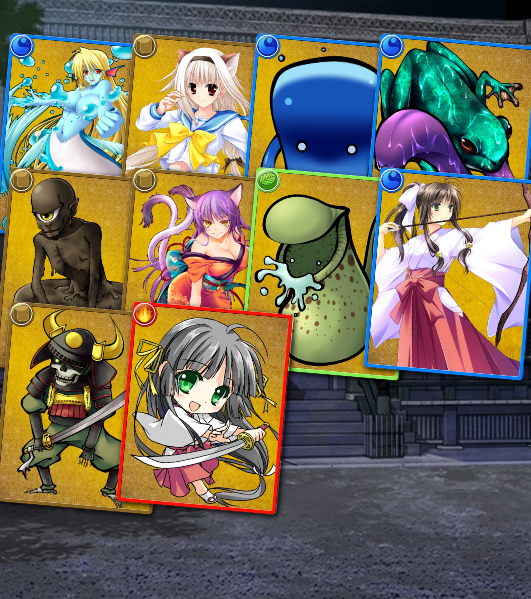 妖狐の修練場・壱の安定クリア目安は、R+巫女のLv25を4枚(属性違いで)ですね。