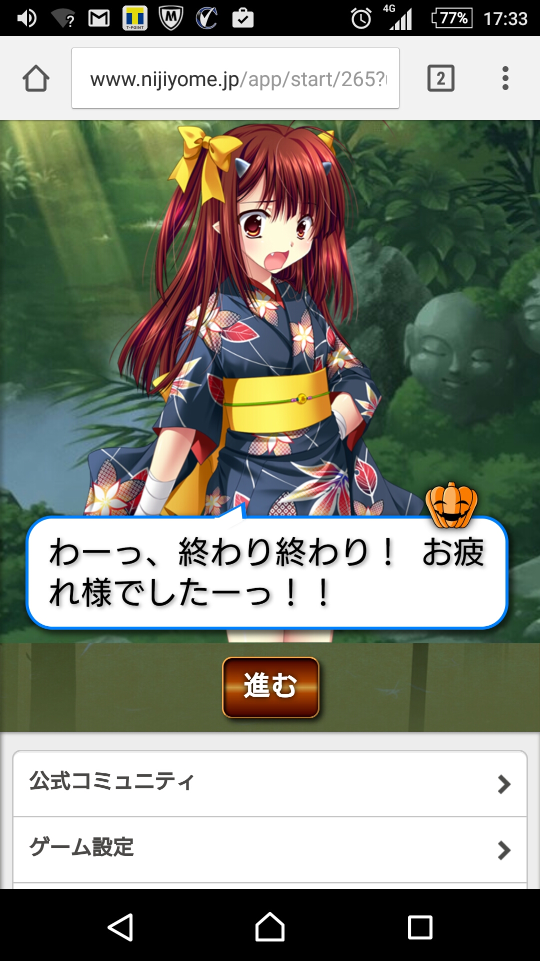 ハロウィンイベント、最後の追い込みの方もいると思うけど、皆さん風邪とか気をつけましょう。冷える冷えるー。 -