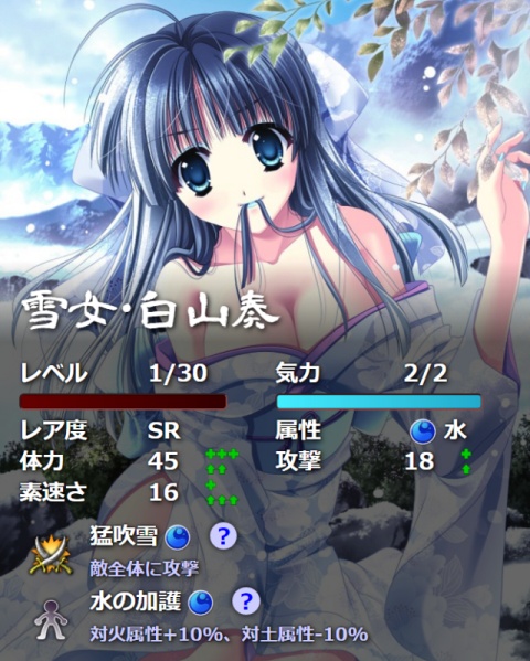 次回アップデートではいくつかの技能に属性が付与されます。もっとも、吹雪系にはすでに水属性が付いてるかと思います。これは発動時に仲間の属性に優先して選択されます。