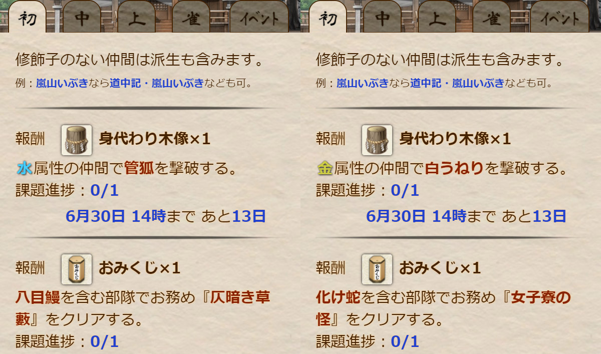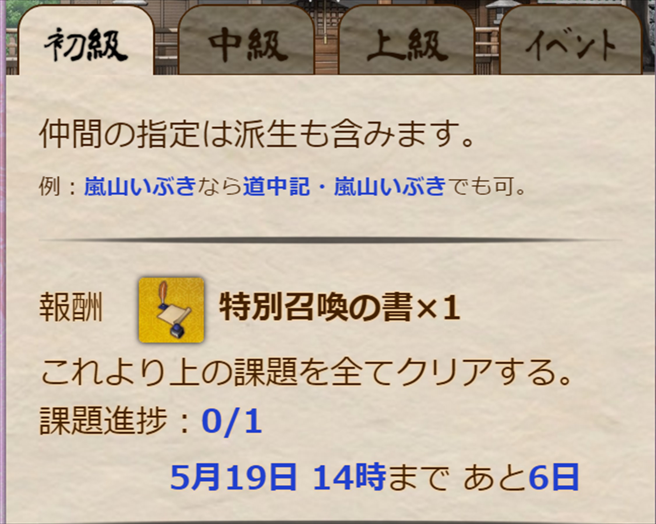例え:特別の妖狐弐で中断してからクリアすると初級のタブになっています。