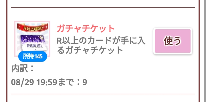 アイテム画面でガチャチケの枚数見てたら内訳8月29日まで2って出てきたのですがこれはガチャチケに期限があるということですか?