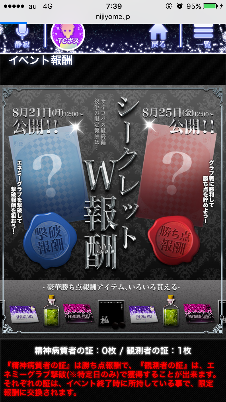 いや、そもそも「観測者の証」をもらった人いますか? -