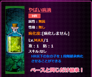 なので、「やばい病滴」が1枚あれば、【方法2】-③から開始すれば最高ステータスまで育てられると思います。 -
