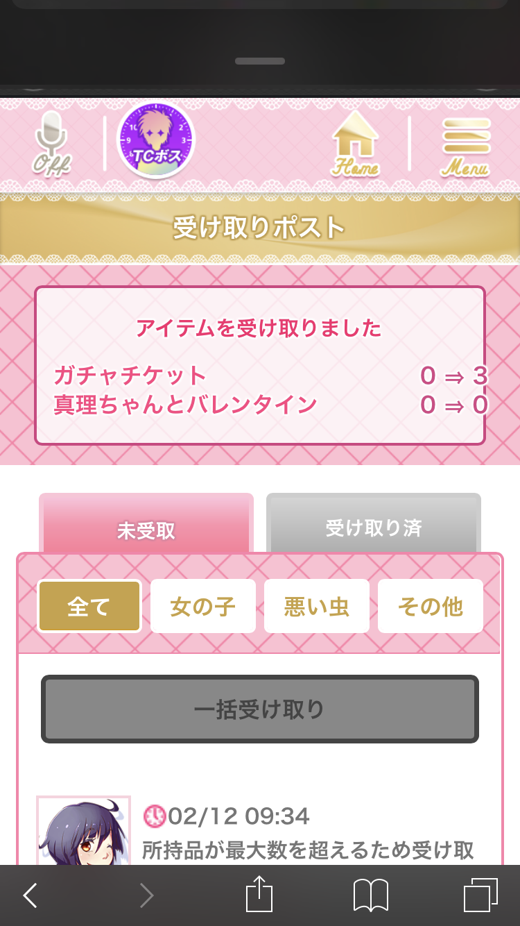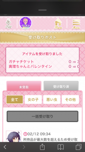 イベントミッション等で、ガチャチケットを
