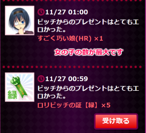 今イベのレアループボス(HP1)を倒すともらえる『ロリビッチからのプレゼント』というアイテム(?)はどこいくんでしょうか?