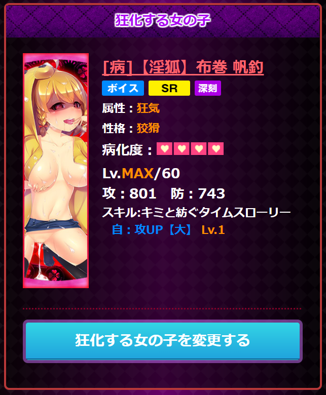 キャラの育成は、結構、複雑です(病化、狂化、深刻狂化、躁鬱狂化などなど)……