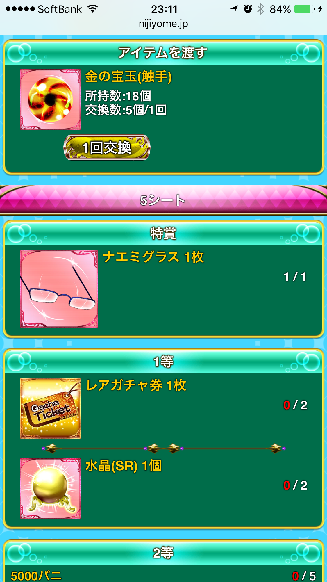 シート1、2で最後まで引けなかったので特賞は最後になるのが仕様だと思ったらシート3で途中で引けた・・・これ特賞は引ける確率が低くなってるんですよね?