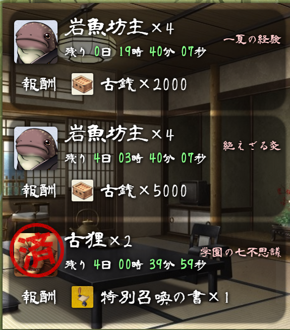次回更新から、この岩魚坊主ならイージー(最上段)にしか現れなくなります。