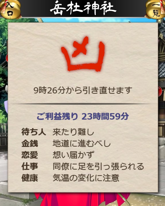 なんか気のせいか、前のアップデートから敵が強くなったのか、おみくじの効果が無いのか、