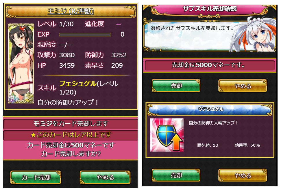 ただ、逆に防御のサブスキルがあるなら、攻撃スキル持ちのURに装備されると、酒場A級とか相手に「2撃目耐えられる」というバランス型の利点もなくなりますが。