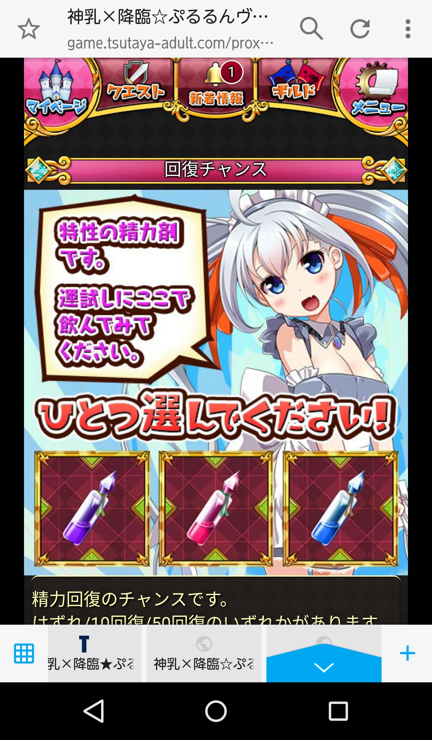 精力満タンなのに回復チャンスが出てきた(ノД`) しかも選んだら「全快しました!」だと!?ヽ(`Д´#)ノ