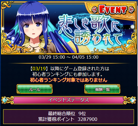 そういえば、次イベ開催のお知らせが無いですね。イベ間が2日になったのかな?
