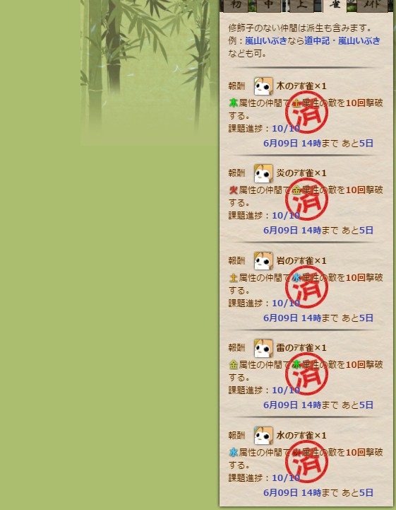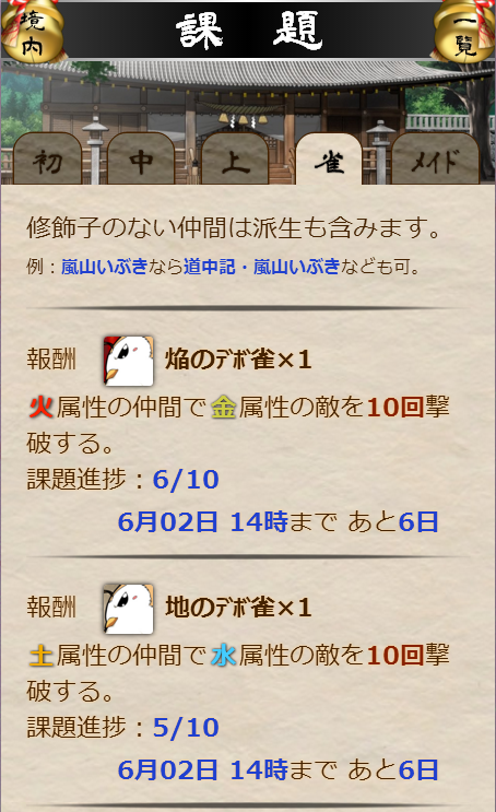 「経凛々で金属性の敵を5回撃破する」の課題は、胡蝶・経凛々でも達成可能でした。