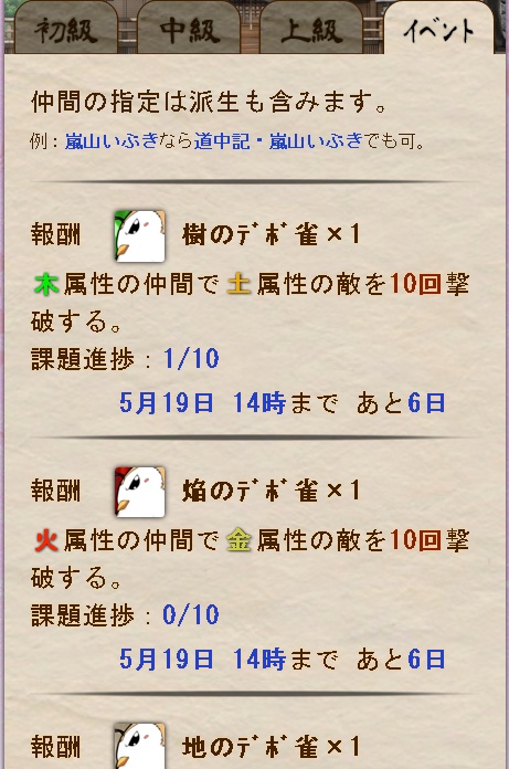 実装直後なので誰でもクリアできるレベルに抑えました。始めたばかりの方に属性の優位を覚えて頂く目的もあります。 -