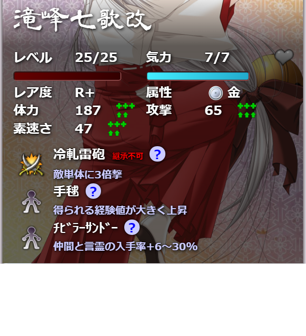 技能育成よりN+育成の方が大変だな。 -