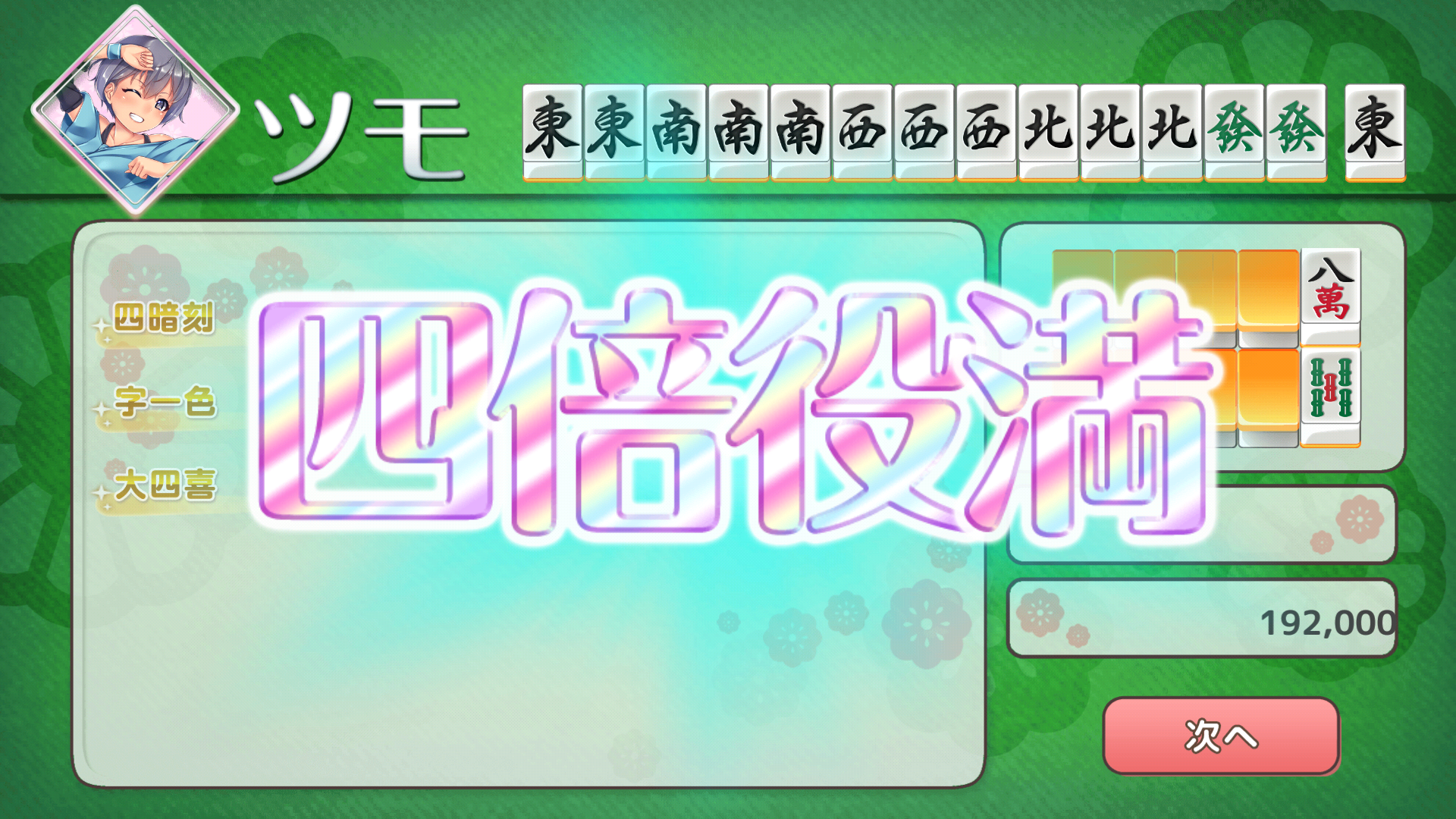 麻雀部分は誰でも天和が出来、3戦やれば一回はダブリーが出るようなゲームです