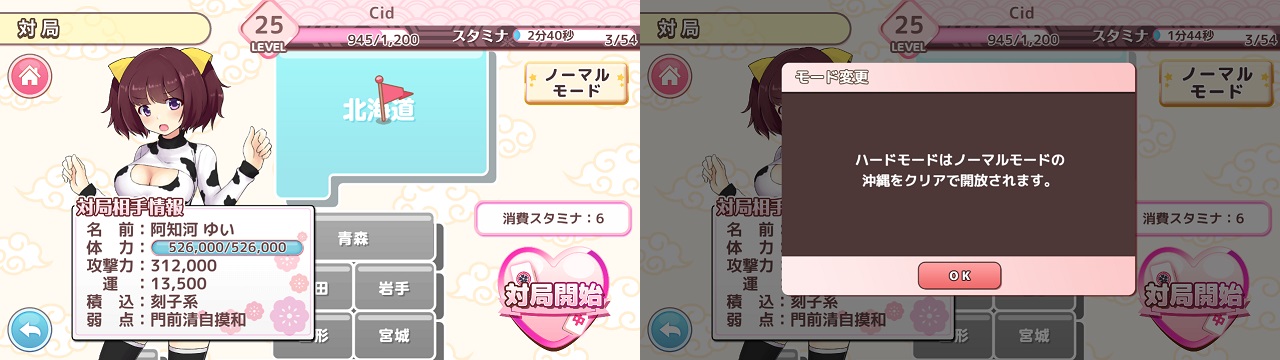 つまり一度でもホーム画面に戻るとハードモードの相手と戦うには一度ノーマルモードの相手を倒さないといけない。ということに…