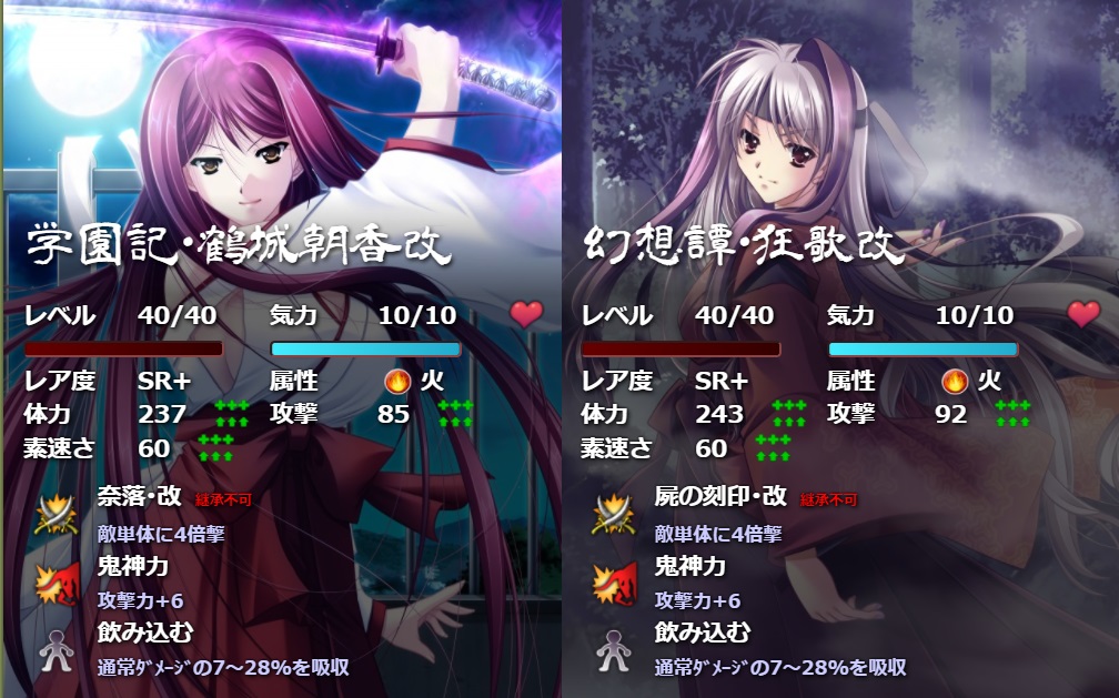 これらのSRは入手するチャンスが無限にあるため、意図的にSR+の能力やその習得技能に制限がかけられているのです。