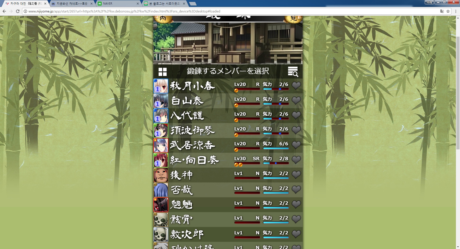 ・R+巫女へ進化させる前に、技能継承用、ステータス強化補正用の妖怪を集め、育てておく。