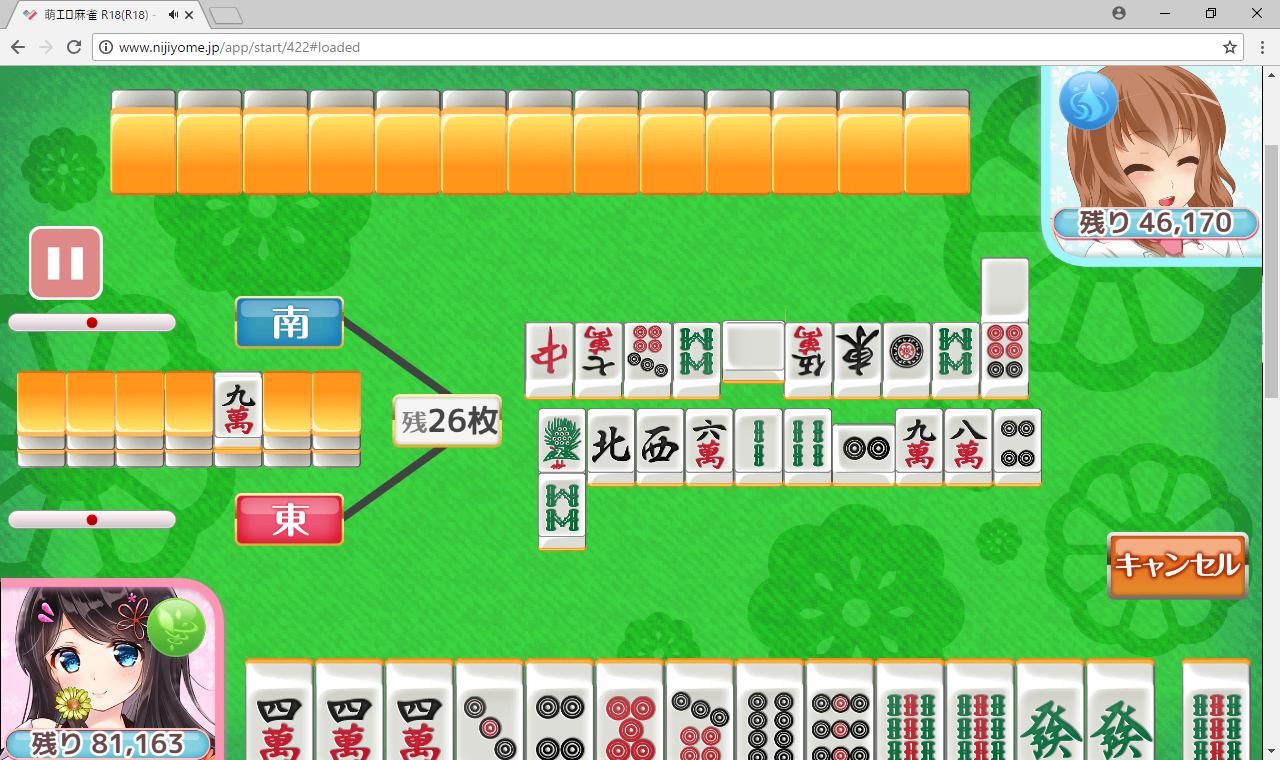 たしかにフリテンなんですがこのゲームはフリテンでも上がれるのになぜこのときは出来なかったのか不思議なんですよね(;´・ω・)ウーン・・・